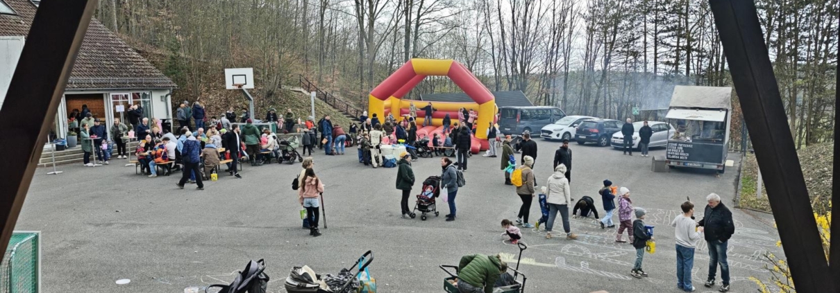 Nach der erfolgreichen Jagd aufs Osternest konnten sich alle stärken: Ob an der Bratwurstbude, beim Kaffee- und Kuchenverkauf oder gemütlich am Lagerfeuer mit Stockbrot – für jeden war etwas dabei. Auch unsere Hüpfburg sorgte wieder für jede Menge Spaß und Bewegung.