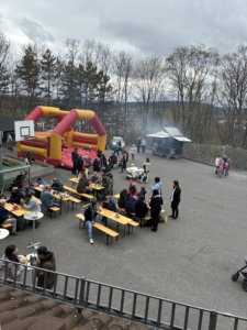 Nach der erfolgreichen Jagd aufs Osternest konnten sich alle stärken: Ob an der Bratwurstbude, beim Kaffee- und Kuchenverkauf oder gemütlich am Lagerfeuer mit Stockbrot – für jeden war etwas dabei. Auch unsere Hüpfburg sorgte wieder für jede Menge Spaß und Bewegung.