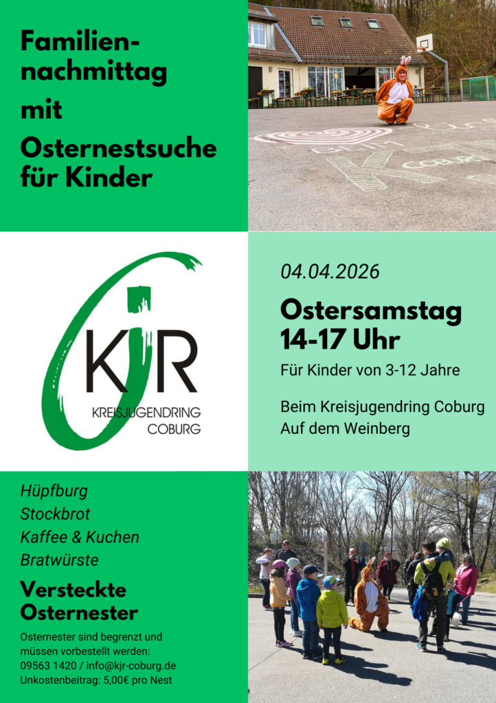 Die Osternester werden personalisiert und müssen vorab bestellt werden. Bestellungen nehmen wir gerne per E-Mail an info(a)kjr-coburg.de oder telefonisch unter der 09563 1420 entgegen – bitte mit Angabe von Name und Alter des Kindes. Der Unkostenbeitrag pro Nest beträgt 5,00 €. Wir bitten um Verständnis, dass die Anzahl an Osternestern begrenzt ist und nach Eingang der Anmeldungen vergeben werden.